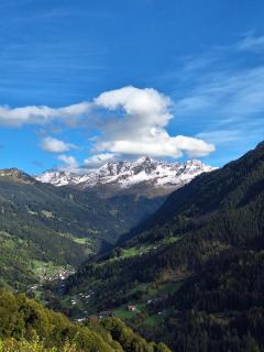 Diese Ferienwohnung mit einer Terrasse und Bergblick hat 2 Schlafzimmer, ein Wohnzimmer, einen Flachbild-TV, eine gut ausgestattete Küche mit einem Kühlschrank und einem Geschirrspüler sowie 1 Badezimmer mit einer Dusche. In dieser Ferienwohnung werden Handtücher und Bettwäsche angeboten.