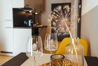 In jeder Wohneinheit gibt es eine voll ausgestattete Küchenzeile mit einem Esstisch, einen Flachbild-TV mit Satellitenkanälen sowie ein eigenes Badezimmer mit einer Dusche und einem Haartrockner. Es gibt einen Kühlschrank, einen Geschirrspüler, eine Mikrowelle sowie eine Kaffeemaschine.