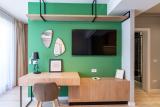Diese Ferienwohnung mit Klimaanlage ist ausgestattet mit 1 Schlafzimmer, Flachbild-TV und einer Küchenzeile mit einem Kühlschrank und einer Mikrowelle