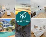 Die Unterkunft Sandy Toes Designer Lux Coastal Ground Floor bietet ihren Gästen eine Veranda / Patio, Gartenblick, einen Sitzbereich, einen Kabel Flachbild-TV, eine voll ausgestattete Küche mit einem Kühlschrank und einem Geschirrspüler sowie ein Gemeinschaftsbad mit einer Dusche und kostenlosen Pflegeprodukten. Es gibt einen Ofen, eine Mikrowelle und eine Herdplatte sowie eine Kaffeemaschine und einen Wasserkocher.